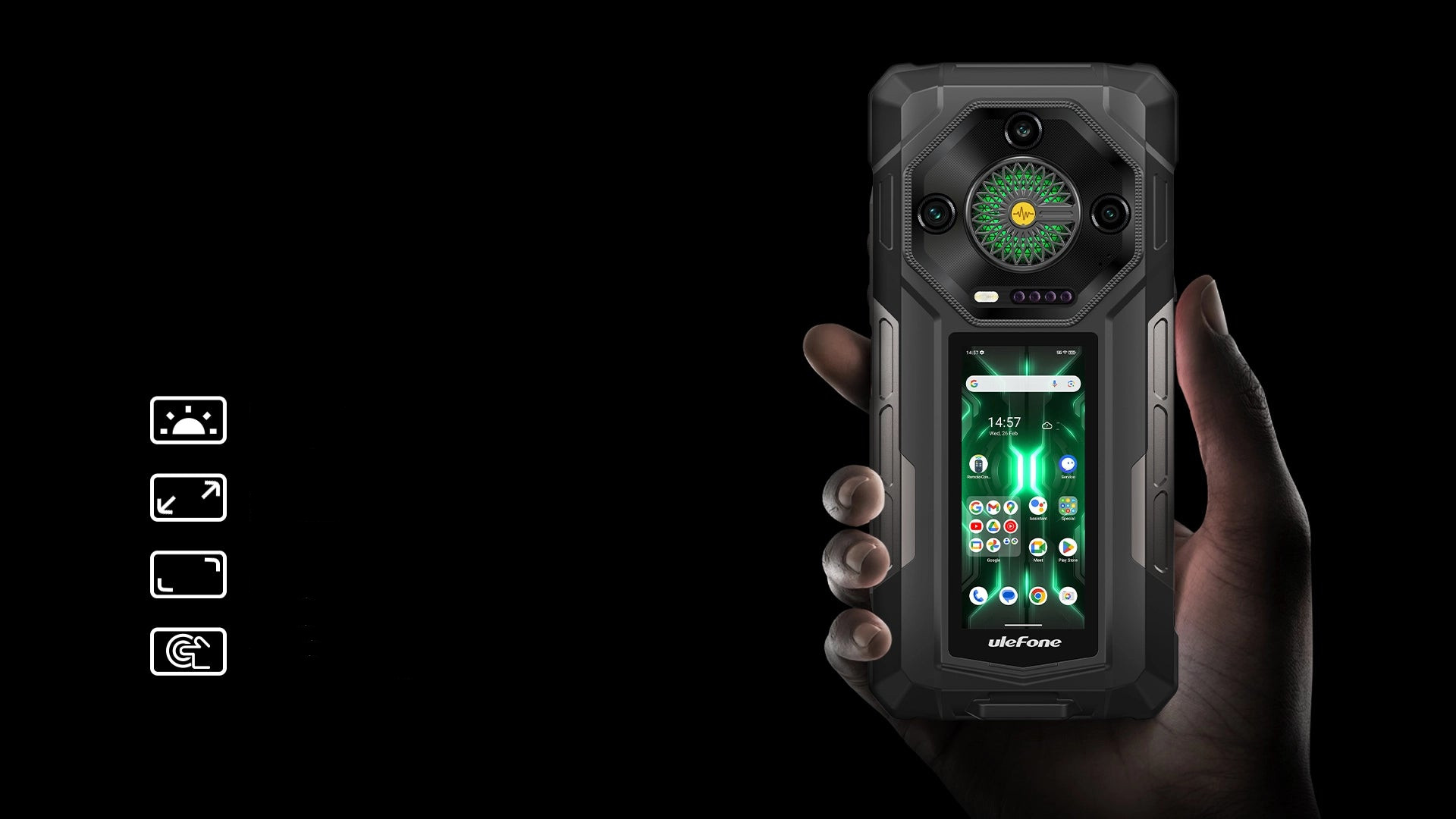 Большой экран на задней панели дублирует функции основного, расширяя возможности управления смартфоном. Переключайтесь с одного экрана на другой в любой момент.