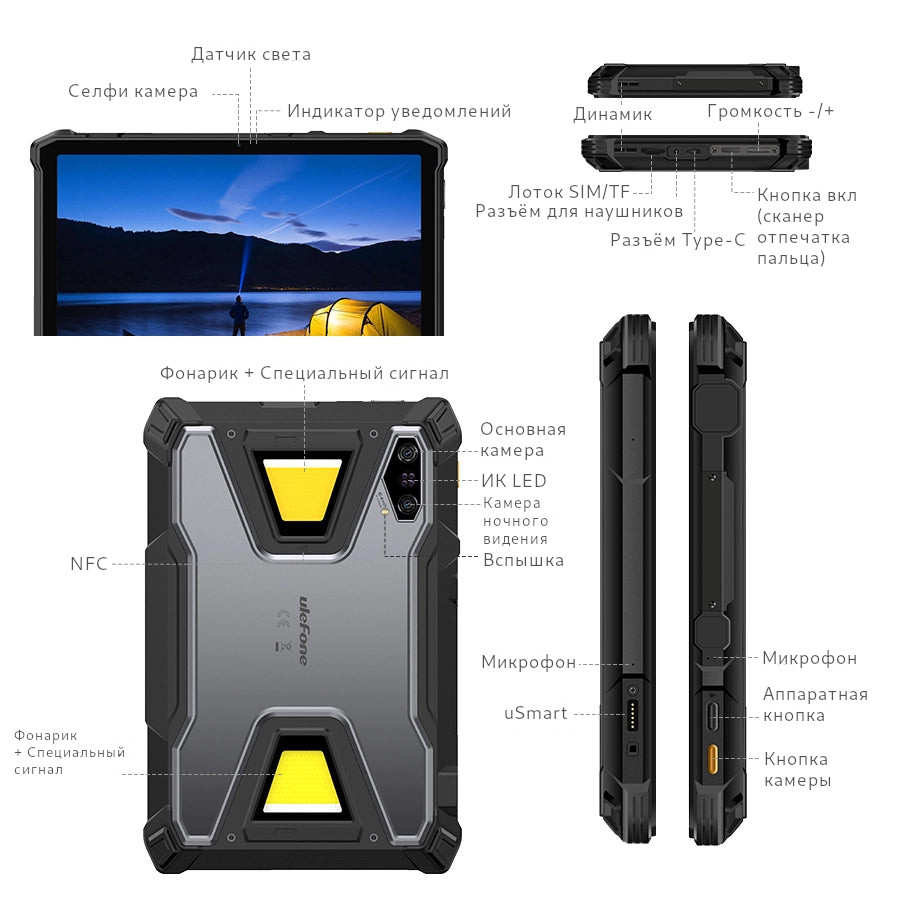 3. Предыдущие характеристики являются теоретическими значениями, основанными на конструкции продукта. Некоторые функции и технические характеристики могут различаться в зависимости от рынка. Для предоставления точной информации о продукте, технических характеристик и функций Ulefone может в режиме реального времени вносить коррективы в предыдущие спецификации, чтобы они соответствовали производительности продукта, спецификациям, индексам и компонентам фактического продукта. Информация о продукте может быть изменена и дополнена без предварительного уведомления.